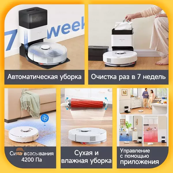 Особенности конструкции: акселерометр, датчик перепада высоты, индикатор заполнения пылесборника, лидар, мусоросборник в базе, мягкий бампер, станция самоочистки, датчик застрявшего колеса, датчик защиты от падения, датчик скорости вентилятора